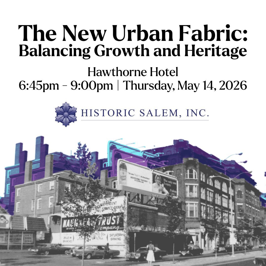 Urban planning today looks very different than it did even twenty-five years ago, shaped by shifting demographics and a nationwide housing shortage. Communities like Salem are grappling with an important question: how do we preserve our historic fabric and character while also responding to the pressures of growth? Join HSI at the historic Hawthorne Hotel in downtown Salem for a ...